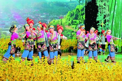 湖南省花垣县十八洞村曾是一个深度贫困村,全村贫困发生率高达57%。通过因地制宜、分类指导、精准扶贫,十八洞村百姓收入增加,村容村貌变化,已经成为全省文明村和旅游定点村。2016年,十八洞村实现整村脱贫。图为十八洞村村民表演节目《美丽名片》。刘振军摄/光明图片